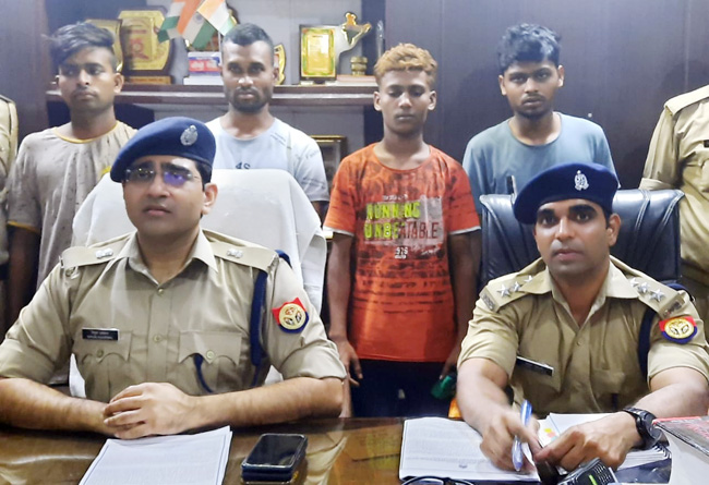 बुधवार को कविनगर थाने में घटना का खुलासा करते हुए एसपी सिटी प्रथम निपुण अग्रवाल ने सीओ कविनगर रितेश त्रिपाठी की मौजूदगी में बताया कि कविनगर एसएचओ अमित कुमार, इंस्पेक्टर गिरीश चन्द्र जोशी, तनवीर आलम, एसआई मोहित कुमार, शशी कुमार, कर्मवीर सिंह, अन्नू कुमार मलिक, संजीव कुमार की संयुक्त टीम ने मंगलवार देर रात चेकिंग के दौरान मुखबिर की सूचना पर रेलवे लाइन के किनारे महागुन सोसायटी के पीछे जंगल से मुगलेशुर पुत्र अलाउद्दीन शेख, आफताब शेख पुत्र फिरोज, करीम उर्फ लल्ला पुत्र शेख हन्नान एवं मुरसलीन पुत्र बप्पी खांन निवासी जहांगीरपुरी दिल्ली को गिरफ्तार किया है।