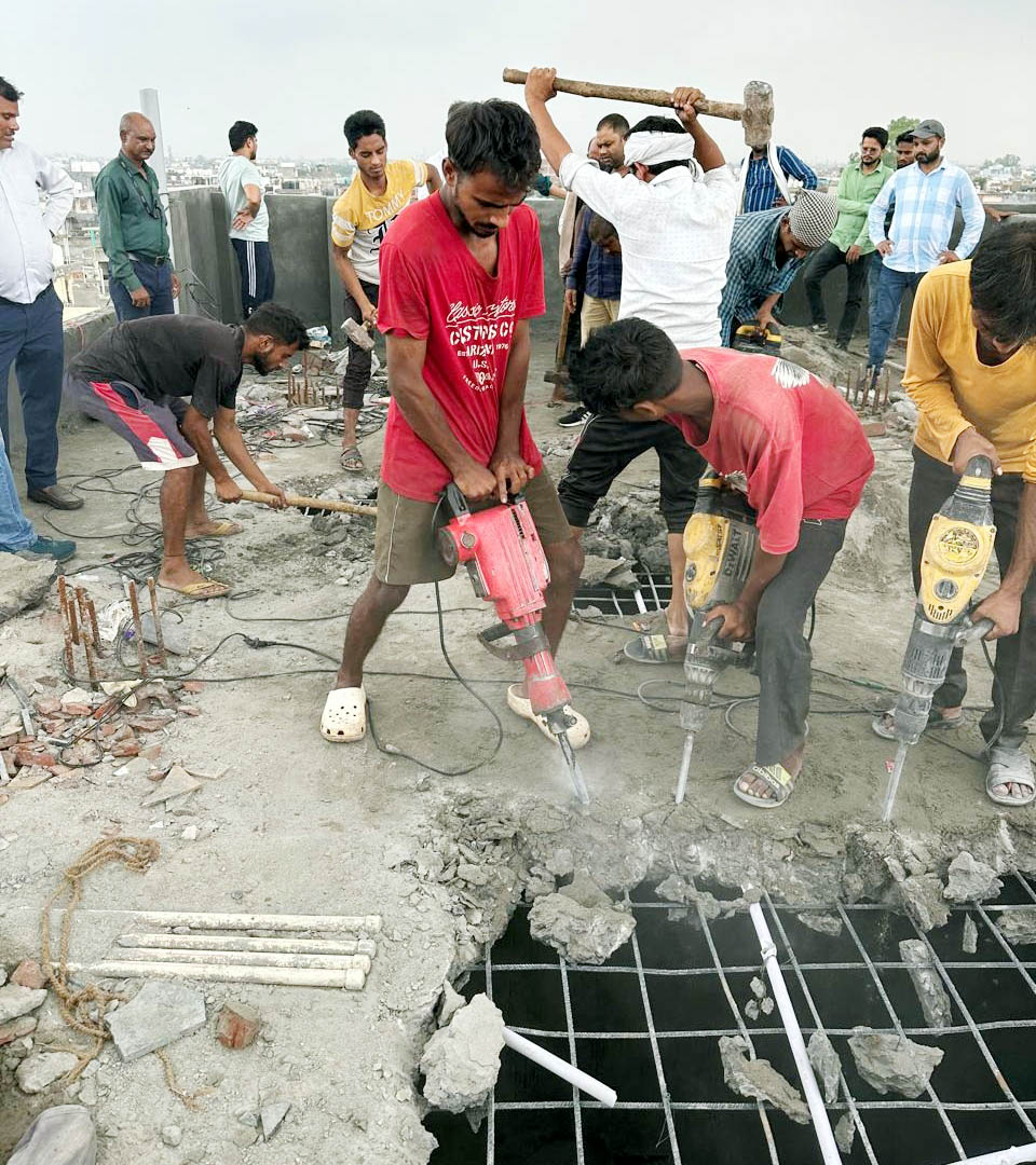 -डीएलएफ., अंकुर विहार में छत पर किए गए अतिरिक्त निर्माण पर हथौड़ा व कटर चलाकर तोड़ी छत