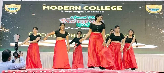 गाजियाबाद। मोहन नगर स्थित मॉडर्न कॉलेज द्वारा आयोजित दो दिवसीय वार्षिकोत्सव नव उत्कर्ष के दूसरे दिन रविवार को को 10 विभिन्न प्रतियोगिताओं जैसे नुक्कड़ नाटक, ट्रेजर हंट, चेस, कैरम, आशु भाषण, क्विज, एकल व सामूहिक नृत्य, फैशन शो आदि का आयोजन किया गया। जिसमें 80 से अधिक विद्यालयों व महाविद्यालयों के लगभग 600 प्रतिभागियों ने प्रतिभाग लिया। महाविद्यालय में अंबेडकर जयंती के उपलक्ष में विभिन्न कार्यक्रमों का भी आयोजन किया गया। समापन सत्र में महाविद्यालय के सचिव विनीत गोयल, महाविद्यालय की प्राचार्या प्रोफेसर निशा सिंह, मुख्य अतिथि डॉक्टर पवन सिन्हा गुरूजी (पावन चिंतन धारा आश्रम के संस्थापक व आध्यात्मिक उपदेशक) एवं एडीएम सिटी गंभीर सिंह उपस्थित रहे।