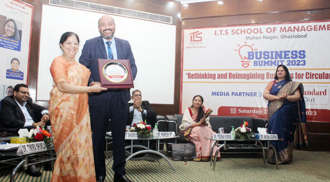 गाजियाबाद। मोहन नगर स्थित आईटीएस स्कूल ऑफ मैनेजमेंट द्वारा शनिवार को रिथिंकिंग एंड रीइमेजिनिंग बिजनेस फॉर सर्कुलर इकोनॉमी विषय पर बिजनेस समिट का आयोजन किया गया। समिट का उद्घाटन मुख्य अतिथि अमित शर्मा, मैनेजिंग डायरेक्टर एंड सीईओ, सतिन हाउसिंग फाइनेंस लि., गेस्ट ऑफ ऑनर डॉ महेश उप्पल, डायरेक्टर, कॉम फर्स्ट एवं नितिन गुप्ता चीफ फाइनेंशियल ऑफिसर, इंफो एज वैंचर, कीनोट स्पीकर डॉ प्रेरणा कुमार, हेड पब्लिक पॉलिसी, कन्वर्जेंट, संस्थान की निर्देशिका डॉ तिमिरा शुक्ला एवं सम्मिट कनवेनर डॉ अनुषा अग्रवाल ने संयुक्त रुप से दीप प्रज्जवलित कर किया। उद्घाटन सत्र में सर्व प्रथम निर्देशिका डॉ तिमिरा शुक्ला ने सभी गणमान्य अतिथियों का स्वागत किया एवं समिट के महत्व और सर्कुलर इकोनॉमी पर प्रकाश डाला।