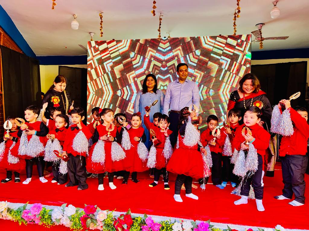 कार्यक्रम मे विशिष्ट अतिथि डॉ विनोद सिंह (चेयरमैन-ग्लोबल इंस्टीटूशन्स, ग्रेटर नोएडा), डॉ उमेश त्यागी (कमिश्नर हेल्थ केयर, दिल्ली गवर्नमेंट), डॉ रोहित गर्ग (डायरेक्टर- मुरादाबाद इंस्टिट्यूट ऑफ टेक्नोलॉजी), अक्षय त्यागी, डॉक्टर हिमांशु गुप्ता मौजूद रहे। छोटे बच्चो ने अपने ही ढंग से प्रस्तुतियां दी। बच्चों की आकर्षक और प्रेरणास्पद प्रस्तुतियों को दर्शकों और अभिभावकों ने खूब सराहा। शानदार प्रस्तुतियों के लिए बच्चों का उत्साह वर्धन भी किया। प्रिंसिपल अनीता सिंगला ने सभी का आभार व्यक्त करते हुए कहा उनका सिर्फ एक ही उद्देश्य है बच्चो को अच्छी शिक्षा का मजबूत नींव देना।