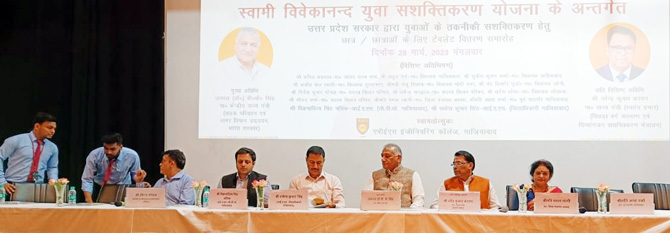 जिलाधिकारी राकेश कुमार सिंह ने सम्मानित अतिथिगण के स्वागत के साथ की। उन्होंने बताया कि उत्तर प्रदेश सरकार की स्वामी विवेकानंद युवा सशक्तिकरण योजना के अंतर्गत उत्तर प्रदेश में 40 लाख युवाओं को टैबलेट