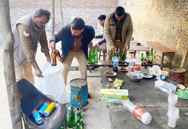 जिला आबकारी राकेश कुमार सिंह ने बताया जिले में अवैध शराब के खिलाफ विशेष प्रतर्वन अभियान चलाया जा रहा है। अभियान के तहत आबकारी विभाग की टीमें अपने-अपने क्षेत्र में दबिश एवं चेकिंग कर रही है। सोमवार दोपहर मुखबिर से सूचना मिली कि थाना लोनी बोर्डर के पास संचालित ढाबे पर अवैध रूप से शराब पिलाई जा रही है। सूचना पर तत्काल कार्रवाई करते हुए आबकारी निरीक्षक अनुज वर्मा एवं मनोज शर्मा की टीम गठित की गई। टीम ने मुखबिर द्वारा बताए गए ढाबे पर दबिश दी। दबिश के दौरान ढाबा मालिक ग्राहकों को शराब पिलाते हुए पाया गया। जब ढाबा मालिक से उसका लाइसेंस मांगा गया तो वह दिखा नहीं सका। पकड़े गए ढाबा मालिक की पहचान बैजू प्रसाद गुप्ता पुत्र राम लखन निवासी मकान नंबर 167, गली नंबर 1, जौहरी एनक्लेव थाना लोनी बॉर्डर है। जिसके ढाबे से दिल्ली मार्का की 2.68 लीटर शराब एवं 3 बियर, 12 शराब के बने हुए पैग व काफी मात्रा में खाली बोतल बरामद किया गया। बने हुए पैग को मौके पर नष्ट कर दिया गया।