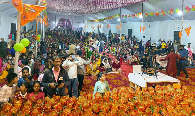कथावाचक पंडित संजय शास्त्री ने श्रीराम-सीता के विवाह की कथा सुनाते हुए कहा कि राजा जनक के दरबार में भगवान शिव का धनुष रखा हुआ था। एक दिन सीता ने घर की सफाई करते हुए उसे उठाकर दूसरी जगह रख दिया। उसे देख राजा जनक को आश्चर्य हुआ, क्योंकि धनुष किसी से उठता नहीं था। राजा ने प्रतिज्ञा की कि जो इस धनुष पर प्रत्यंचा चढ़ाएगा, उसी से सीता का विवाह होगा। उन्होंने स्वयंवर की तिथि निर्धारित कर सभी राजा- महाराजा को विवाह के लिए निमंत्रण भेजा। वहां आए सभी लोगों ने एक-एक कर धनुष को उठाने की कोशिश की, लेकिन किसी को भी इसमें सफलता नहीं मिली।