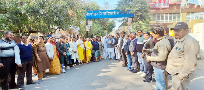 गाजियाबाद। बेसिक शिक्षा परिषद के नियंत्रणाधीन संचालित परिषदीय विद्यालयों में बिना पूर्ण संसाधनों के ऑनलाइन डिजिटलाइजेशन किए जाने से जनपद के समस्त शिक्षकों में बेहद रोष है। प्राथमिक शिक्षक संघ के प्रांतीय उपाध्यक्ष डॉ अनुज त्यागी ने बताया कि शासन द्वारा बिना पूर्ण संसाधन दिए परिषदीय विद्यालयों को डिजिटलाइजेशन किए जाने संबंधी आदेश निर्गत किया गया है जिसके विरोध में गुरुवार को जनपद के सैकड़ों शिक्षकों ने जिलाधिकारी कार्यालय का घेराव कर मुख्यमंत्री के नाम ज्ञापन दिया। उन्होंने बताया कि परिषदीय विद्यालयों को ऑनलाइन डिजिटलाइजेशन किए जाने के लिए विभागीय अधिकारियों द्वारा निर्देश दिए गए है जबकि अधिकारियों द्वारा उक्त व्यवस्था को संचालित किए जाने के लिए पूरे प्रदेश में समुचित संसाधन उपलब्ध नहीं कराये गये। विभाग द्वारा यह अवगत कराया जाता है कि अन्य विभागों में भी ऑनलाइन डिजिटलाइजेशन किया गया है तो परिषदीय विद्यालयों को भी ऑनलाइन डिजिटलाइजेशन किया जाए। परन्तु उक्त व्यवस्था को संचालित किए जाने के लिए पूरे प्रदेश में समुचित संसाधन अभी उपलब्ध नहीं है ऐसे में उक्त व्यवस्था को संचालित करा पाना संभव नहीं हो रहा है।