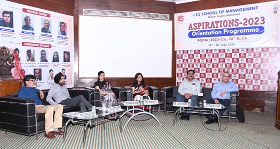 गाजियाबाद। मोहन नगर स्थित आईटीएस स्कूल ऑफ मैनेजमेंट में चल रहे 28वें पीजीडीएम (2023-25) बैच के प्रतिभागियों के लिए ओरिएंटेशन प्रोग्राम एस्पिरेशन-2023 के पांचवे दिन शुक्रवार को विभिन्न सत्रों का आयोजन किया गया। सर्वप्रथम डॉ. तिमिरा शुक्ला, निदेशक आईटीएस स्कूल ऑफ मैनेजमेंट ने सफलता की यात्रा विषय पर व्याख्यान देते हुए सफलता प्राप्ति की सुनिश्चितता के सूत्र बताए।