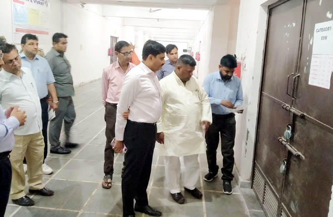 गाजियाबाद। लोकसभा चुनाव के बाद कलेक्ट्रेट परिसर स्थित वेयर हाउस में रखी जाने वाली इलेक्ट्रॉनिक वोटिंग मशीन (ईवीएम) के लिए वहां की व्यवस्था की देखी गई। मंगलवार को जिला निर्वाचन अधिकारी इन्द्र विक्रम सिंह ने सहायक जिला निर्वाचन अधिकारी हरिकृष्ण शर्मा आदि अधिकारियों एवं भाजपा, कांग्रेस, सपा व बसपा के प्रतिनिधियों के साथ वेयर हाउस का त्रैमासिक निरीक्षण किया। जिलाधिकारी ने वेयर हाउस हॉल का गेट खुलवाकर देखा। इसके साथ ही वहां की साफ-सफाई के अलावा सीसीटीवी कैमरे को देखा गया।