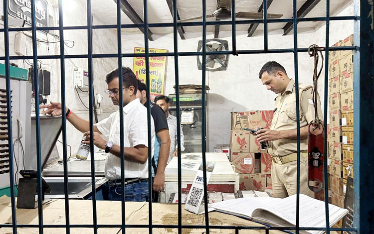 जिले में शराब तस्करी को रोकने के लिए आबकारी विभाग की टीम द्वारा जहां एक ओर लाइसेंसी शराब की दुकानों का औचक निरीक्षण किया गया। वहीं दुकानों के आसपास खुली पान-बीड़ी व नमकीन दुकानों का भी निरीक्षण किया गया। दुकानों का निरीक्षण कर विक्रेता को हिदायत दी गई कि बाहरी एवं यूपी की शराब मिलने पर सख्त कार्रवाई होगी। लालच में आकर अगर गलती से शराब का एक पव्वा भी दुकान से बेचते हुए पाया गया तो सीधा जेल भेजने की कार्रवाई होगी। साथ ही शराब विक्रेताओं को भी नियमानुसार शराब बिक्री करने और अधिक से अधिक ऑनलाइन पेमेंट लेने के भी निर्देश दिए गए। साथ दुकानों में साफ-सफाई के लिए भी कहा गया।
