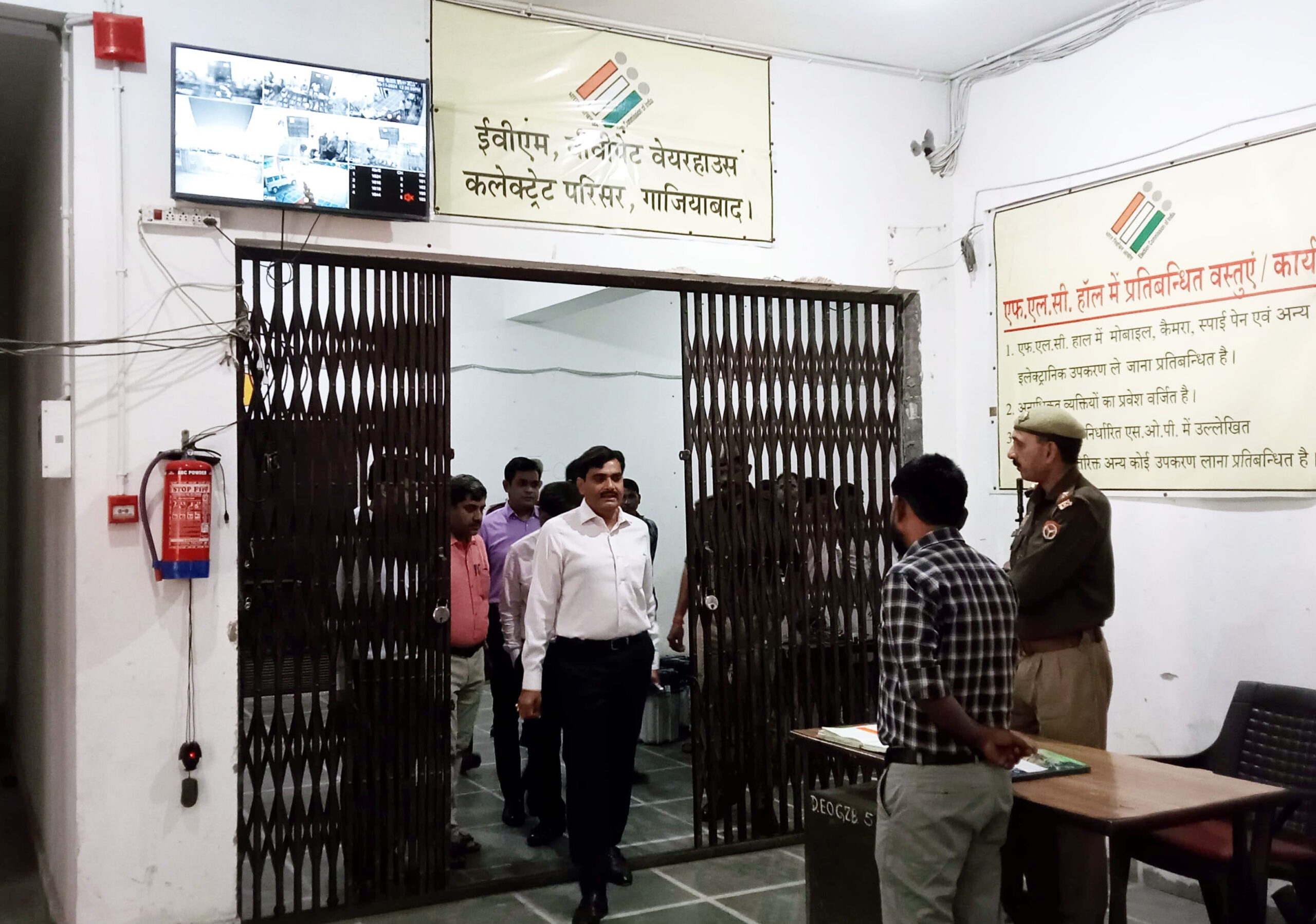 गाजियाबाद। इलेक्ट्रॉनिक वोटिंग मशीन (ईवीएम) एवं वीवी पैट वेयर हाउस में मंगलवार को जिलाधिकारी एवं जिला निर्वाचन अधिकारी इन्द्र विक्रम सिंह ने ईवीएम मशीनों की कमीशनिंग के कार्य का निरीक्षण किया। जिला निर्वाचन अधिकारी ने एडीएम प्रशासन रणविजय सिंह,रिटर्निंग अधिकारी डॉ.संतोष कुमार उपाध्याय,सदर तहसीलदार रवि कुमार सिंह,एसीओ विवेक सिंह आदि अधिकारियों की उपस्थिति में कलेक्ट्रेट परिसर स्थित ईवीएम एवं वीवी पैट वेयर हाउस में ईवीएम मशीनों की कमीशनिंग के कार्य का स्थलीय निरीक्षण करते हुए मशीनों के कमीशिनिंग कार्य की गुणवत्ता एवं सूक्ष्मता से जांच कराई गई।