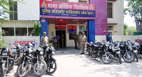 गाजियाबाद। दिल्ली-एनसीआर में मौज-मस्ती के लिए दुपहिया वाहन चोरी की वारदात को अंजाम देने वाले गिरोह के सरगना समेत पांच शातिर वाहन चोरों को थाना क्रॉसिंग रिपब्लिक पुलिस ने गिरफ्तार किया है। जिनके कब्जे से पुलिस ने चोरी की 20 बाइकों को बरामद किया है। पकड़े गए आरोपी पैदल घूम कर सुनसान जगह पर खड़ी बाइकों को चोरी कर उसे सुनसान जगह पर छिपा देते थे। चोरी के कुछ दिन बाद बाइक का नंबर प्लेट बदलकर ग्रामीण क्षेत्र में जाकर 10 से 15 हजार रुपए में बेच देते थे। आरोपी पिछले करीब 1 वर्ष से लगातार वाहन चोरी की वारदात को अंजाम दे रहे है, जो कि सौ से अधिक बाइकों को चोरी कर बेच चुके है। यह गैंग गाजियाबाद, एनसीआर, हरियाणा व दिल्ली में वाहन चुराया करता था। इस गिरोह ने वाहन चुराने का नेटवर्क पूरी तरह से सिस्टेमेटिक बनाया हुआ था। वाहन चोरी करने और उसे ठिकाने लगाने तक प्रत्येक सदस्य का काम बंटा हुआ था।