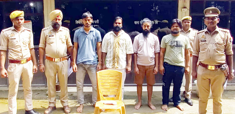रुपये नहीं देने पर जान से मारने की धमकी तक दे रहे है। सूचना पर तत्काल कार्रवाई करते हुए थाना प्रभारी मुकेश सोंलकी और सर्विलांस की टीम गठित की गई। सर्विलांस के आधार पर मुरादनगर क्षेत्र के ओयो होटल रायल आर्बिट इन मनोटा में दबिश देकर आकाश झा को बंधक बनाने वाले दीपक पुत्र रामजी लाल निवासी ग्राम बखरबा मोदीनगर, आकाश पुत्र अजय कुमार निवासी संत नगर बुराडी तिमारपुर दिल्ली, संजय पुत्र शेखर निवासी हनुमानपुरी मोदीनगर और तरूण पुत्र राजेन्द्र निवासी गढ़ी हरसरू गुडग़ांव सेक्टर-10 हरियाणा को गिरफ्तार कर आकाश झा को सकुशल बरामद कर लिया गया। आकाश के कब्जे से एक पिस्टल-32 बोर की बरामद किया गया।
