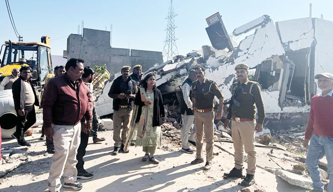 क्षेत्र में 67,500 वर्गमीटर क्षेत्रफल में 6 अनाधिकृत कॉलोनियों काटी जा रही है। इनमें साईट ऑफिस, मकान, दुकानें, कमरें, सड़क, भूखंडों की बाउंड्रीवाल आदि को बुलडोजर चलाकर ध्वस्त किया गया। गांव भिक्कनपुर क्षेत्र में निर्माणाधीन 4 दुकानों को भी ध्वस्त किया गया। इन कॉलोनियों में कॉलोनाइजर एवं भूखंड खरीदकर निर्माण किए जाने के चलते इन्हें ध्वस्त किया गया। ध्वस्तीकरण की कार्रवाई के दौरान कॉलोनाइजर एवं निर्माण करने वाले लोगों ने जमकर विरोध किया। मगर भारी संख्या में मौजूद पुलिस फोर्स ने उन्हें लाठी फटकार कर वहां से खदेड़ दिया। ओएसडी गुंजा सिंह ने आमजन से अपील करते हुए कहा कि बगैर मानचित्र स्वीकृति के अनाधिकृत रूप से काटी जा रही कॉलोनाइजर द्वारा अवैध कॉलोनी में भूखंड, फ्लैट, मकान आदि न खरीदें। अवैध कॉलोनियों में भवन मानचित्र स्वीकृत जीडीए नहीं करता है। बगैर नक्शा के अवैध भवन को ध्वस्त किया जाएगा।
