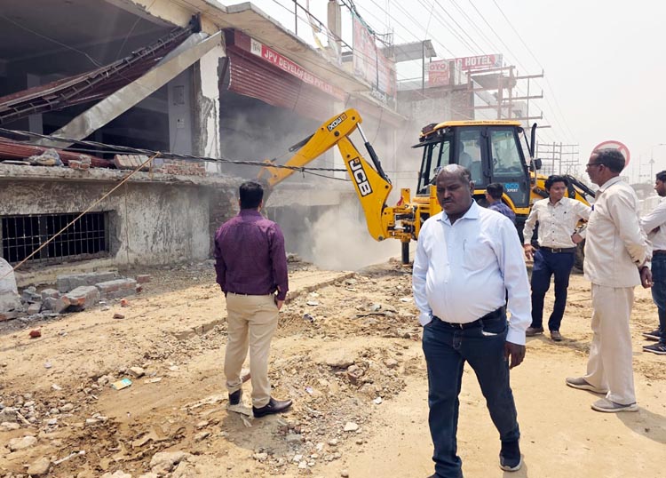 गाजियाबाद। गाजियाबाद विकास प्राधिकरण (जीडीए) प्रवर्तन जोन की टीम ने गुरूवार को नेशनल हाइवे-9 किनारे ग्राम महरौली में अनाधिकृत रूप से बनाई जा रही व्यवसायिक बिल्डिंग को बुलडोजर चलाकर ध्वस्त कर दिया। जीडीए उपाध्यक्ष अतुल वत्स की अनाधिकृत कॉलोनियों और अवैध निर्माण को ध्वस्त करने के सख्त आदेश के क्रम में यह बड़ी कार्रवाई की गई। गुरूवार को जीडीए प्रवर्तन जोन-5 के सहायक अभियंता अनुज कुमार, अवर अभियंता प्रशांत मिश्रा, अखिल मिश्रा ने जीडीए पुलिस की मौजूदगी में मनोज राठी पुत्र जीपी सिंह द्वारा अंग्रेजी शराब व 7 स्टार होटल के बीच