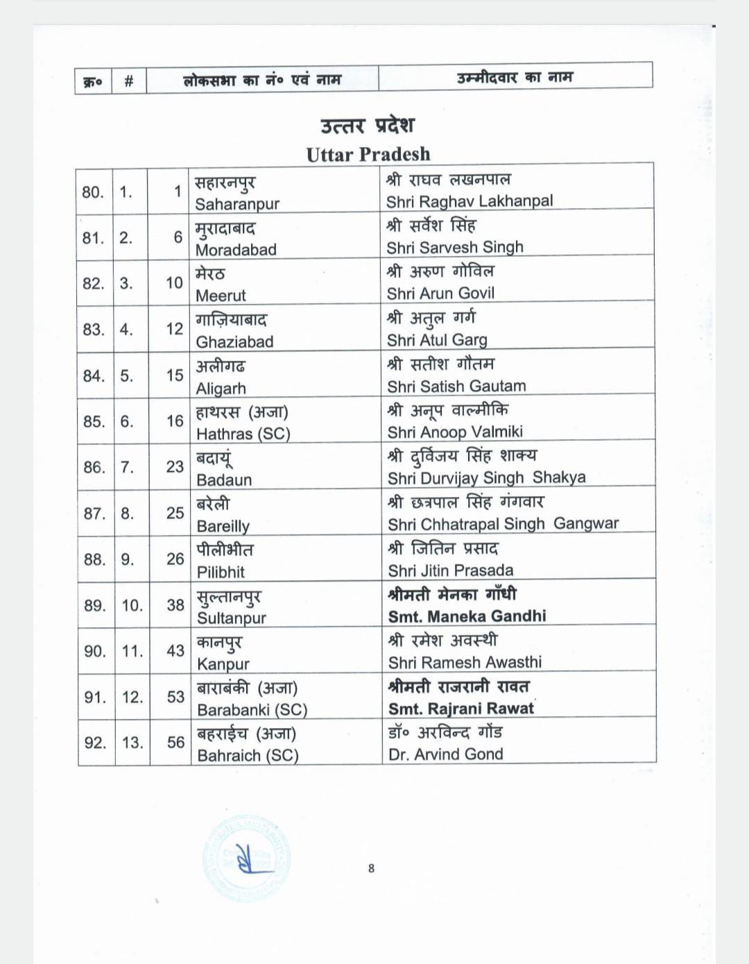 देखें भाजपा प्रत्याशियों की लिस्ट