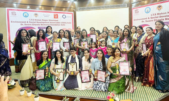 गाजियाबाद। अंतरराष्ट्रीय महिला दिवस के अवसर पर एनवायरनमेंट एंड सोशल डेवलपमेंट एसोसिएशन (ई.एस.डी.ए.) दिल्ली, आईटीएस मोहन नगर गाजियाबाद एव डॉ. स्वर्ण चावला मेमोरियल फाउंडेशन दिल्ली ने संयुक्त रूप आई.टी.एस मोहन नगर में बालिका उत्सव (गर्ल्स फेस्ट) और पुरस्कार समारोह (महिला शक्ति पुरस्कार एव वुमन अचिवर अवार्ड) का आयोजन किया। कार्यक्रम मे महिलाओं के सशक्तिकरण, महिला अधिकार, लिंग असमानता एव अज्ञानतावश मासिक धर्म और महामारी से होने वाली बीमारियों पर गहन चर्चा की गई एव तथा देश की 42 महिलाओ को सम्मानित किया गया जो शिक्षा, स्वास्थ, राजनीति, प्रसाशन, समाज सेवा, खेल, पत्रकारिता, कॉरपोरेट आदि क्षेत्रों मे अपना परचम लहरा रही और महिलाओं के उत्थान एव सशक्तिकरण के लिए कार्य कर रही है। कार्यक्रम संयोजक एव ई.एस.डी.ए. के चेयरमैन डॉ जितेंद्र नागर ने अपने स्वागत भाषण मे बताया कि यह कार्यक्रम ई.एस.डी.ए. संस्था द्वारा 2005 से चलाए जा रहे बेटी बचाओ आंदोलन के उपलक्ष्य मे एवं सतत विकास लक्ष्य 5: लैंगिक समानता के प्रसार हेतु किया जा रहा है जो लैंगिक समानता हासिल करने और सभी महिलाओं और लड़कियों को सशक्त बनाने के लिए है जो 2015 में संयुक्त राष्ट्र द्वारा स्थापित किया गया था।
