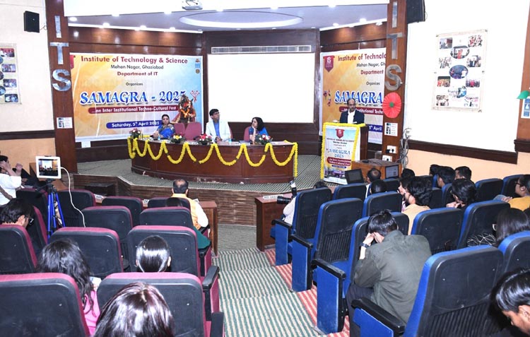 गाजियाबाद। मोहन नगर स्थित आईटीएस के सूचना प्रौद्योगिकी (लगातार चार बार राष्ट्रीय प्रत्यायन बोर्ड द्वारा प्रत्यायित एमसीए पाठ्यक्रम) विभाग द्वारा रविवार को बारहवें अन्तर्महाविद्यालय समारोह समग्र- 2025 का भव्य आयोजन किया गया। इस कार्यक्रम में राष्ट्रीय राजधानी क्षेत्र के साथ-साथ सुदूर स्थानों जैसे लखनऊ, मुरादाबाद, जयपुर, मेरठ, गौतम बुद्ध नगर एवं फरीदाबाद के विभिन्न महाविद्यालयों से एक हजार से अधिक विद्यार्थियों ने भाग लिया। इस कार्यक्रम का उद्देश्य विभिन्न महाविद्यालयों के विद्यार्थियों को एक साझा मंच प्रदान करना था, जहाँ वे विविध गतिविधियों में भाग लेकर अपनी बहुमुखी प्रतिभा का प्रदर्शन कर सकें एवं आपसी समझ और सहयोग को बढ़ावा दे सकें। इस समारोह में कुल दस प्रतियोगिताओं को सम्मिलित किया गया था जिनमें एकल गायन, एकल नृत्य, सी प्रोग्रामिंग, पाइथन प्रोग्रामिंग, कहानी वाचन, खोज प्रतियोगिता, चलचित्र निर्माण, रंगोली, सूचना प्रौद्योगिकी प्रश्नोत्तरी तथा पोस्टर निर्माण शामिल थे।