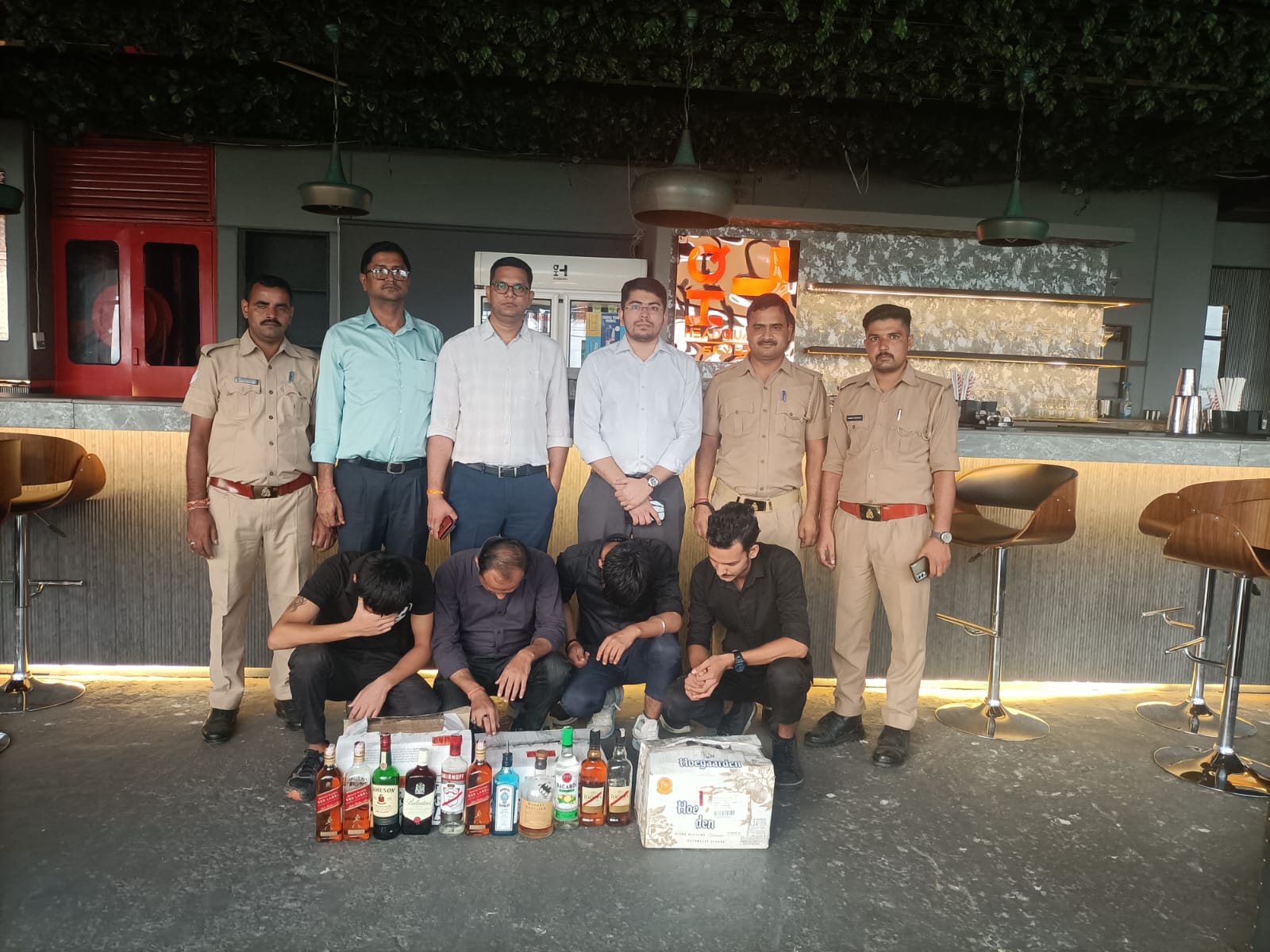 जिला आबकारी अधिकारी सुबोध कुमार श्रीवास्तव ने बताया शुक्रवार रात आबकारी निरीक्षक क्षेत्र-4 अभिनव शाही, गौरव चन्द, रवि जायसवाल की संयुक्त टीम ने बिसरख गौर सिटी के एंबार्क प्लाजा स्थित स्काईबार हेडक्वार्टर रेस्टोरेंट में दबिश दी। दबिश के दौरान जब रेस्टोरेंट में रखी शराब की बोतल की जांच की गई तो रेड लेबल, टीचर्स हाइलैंड्स क्रीम, बेलेंटाइन बकार्डी व मंकी शोल्डर के कुल 8 बोतल व जेम्सन सिमरन ऑफ के खाली बोतल हरियाणा मार्का और कोरोना, किंगफिशर, ब्रीजर के कुल 59 पॉइंट बरामद किया गया। वहीं मौके से पुष्पराज सिंह पुत्र दिनेश सिंह, अमित शर्मा पुत्र हरिओम शर्मा, नरेश चन्द पुत्र खडग़ चन्द, सुधीर भट्ट पुत्र पदमराज भट्ट को गिरफ्तार किया गया। वहीं मौके से टीम को देखकर मैनेजर बंजरगी फरार हो गया। जिनके खिलाफ थाना बिसरख मेंं आबकारी अधिनियम के तहत कार्रवाई करते हुए जेल भेजा गया। साथ रेस्टोरेंट को ब्लैक लिस्ट की कार्रवाई की गई। जिससे भविष्य में वह आबकारी विभाग से लाइसेंस न ले सकें।