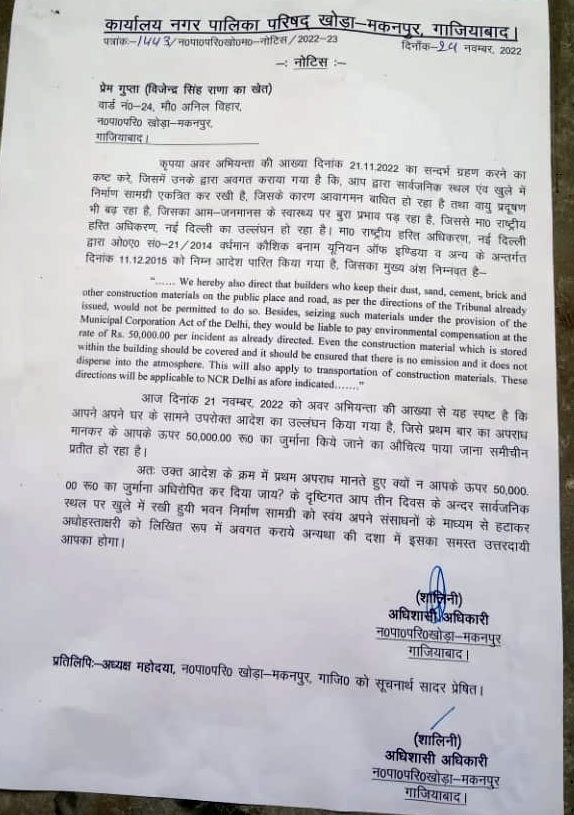 खोड़ा (उदय भूमि)। खोड़ा नगर पालिका परिषद अपने हैरंगेंज कारनामों के लिए जानी जाती है। खोड़ा नगरपालिका परिषद के हैरंगेंज कारनामे अब लोगो को भूतकाल में जाने वाली टाईम मशीन के अविष्कार करने के लिए विवश कर रही है। अगर भूतकाल में जाने वाली टाईम मशीन का अविष्कार नही हुआ तो खोड़ा नगरपालिका परिषद के अधिकारी और कर्मचारी उन पर पेनल्टी लगाना शुरू कर देंगे। क्योंकि नगरपालिका परिषद वर्तमान में नोटिस जारी कर भूतकाल में जवाब मांग रही है। जानकारी के अनुसार नगर पालिका परिषद के कर्मचारी गुरुवार दिनांक 1 दिसंबर 2022 को एनजीटी के नोटिस जारी कर रहे थे। कुछ मकानो में नोटिस जारी किए गए और कुछ मकान मालिकों के हाथो में नोटिस दिए गए। लेकिन जब मकान मालिको ने नोटिस को पढा तो वह हैरत में पढ गए। क्योंकि 1 दिसंबर 2022 को दिए जाने वाले नोटिस का जवाब 27 नवंबर 2022 तक देना है।