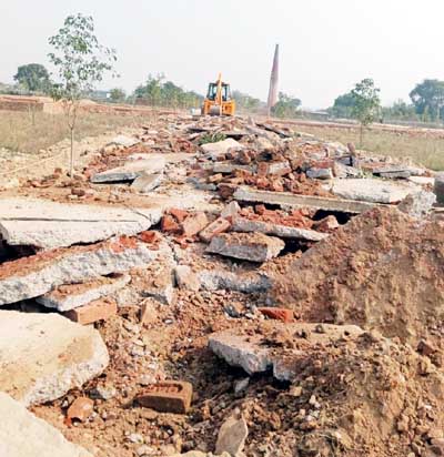 गाजियाबाद। गाजियाबाद विकास प्राधिकरण (जीडीए) ने शुक्रवार को भिक्कनपुर-दुहाई और शाहपुर निज मोरटा क्षेत्र में फैली चार अनाधिकृत कॉलोनियों को बुलडोजर से ध्वस्त कर दिया। जीडीए उपाध्यक्ष अतुल वत्स के निर्देश के अनुरूप प्रवर्तन टीम ने साईट ऑफिस, इंटरलॉकिंग सड़क और भूखंडों की बाउंड्रीवाल को पूरी तरह नष्ट कर दिया। प्रवर्तन टीम के प्रभारी और ओएसडी राजीव रत्न सिंह के नेतृत्व में यह कार्रवाई सहायक अभियंता राजीव कुमार, अवर अभियंता योगेश कुमार वर्मा, अवर अभियंता राजन सिंह और जीडीए पुलिस बल की मौजूदगी में की गई। भिक्कनपुर, दुहाई और शाहपुर निज मोरटा में कुल 61 बीघा क्षेत्रफल में अवैध प्लाटिंग और निर्माण किया जा रहा था। ग्राम-भिक्कनपुर में नरेंद्र और रविन्द्र पुत्रगण स्वर्गीय मंशाराम के द्वारा लगभग 10 हजार वर्गमीटर में, हेमलता पत्नी नरेंद्र गर्ग एवं योगेश शर्मा, दिनेश शर्मा द्वारा लगभग 18 हजार वर्गमीटर में, शिवांक शर्मा और जितेन्द्र दत्त शर्मा द्वारा लगभग 26 हजार वर्गमीटर में, तथा चेतन यादव द्वारा लगभग 7 हजार वर्गमीटर में अवैध कॉलोनियों का निर्माण किया जा रहा था। बुलडोजर की मदद से सभी साईट ऑफिस, इंटरलॉकिंग सड़क और बाउंड्रीवाल ध्वस्त कर दी गई।