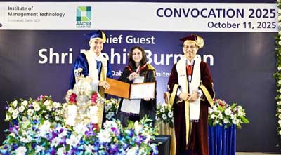 दीक्षांत समारोह के दौरान निदेशक आतिश चट्टोपाध्याय ने कहा कि भविष्य केवल कृत्रिम बुद्धिमत्ता द्वारा तय नहीं होगा, बल्कि यह इस बात पर निर्भर करेगा कि हम मिलकर क्या कर सकते हैं। उन्होंने छात्रों को याद दिलाया कि नेतृत्व केवल उपलब्धियों के बारे में नहीं है, बल्कि जिम्मेदारी और समाज में योगदान देने के बारे में भी है। स्नातकों को यह भी बताया गया कि आईएमटी गाजियाबाद सतत विकास लक्ष्यों में योगदान, महिला छात्रों को 25 प्रतिशत छात्रवृत्ति और आर्थिक रूप से कमजोर छात्रों को वित्तीय सहायता प्रदान करता है। समारोह की समाप्ति टोपी को हवा में फेंकने के साथ हुई, जो छात्रों के लिए आशा, उत्साह और नई शुरुआत का प्रतीक बन गई। यह दिन छात्र, संकाय और परिवार के लिए गर्व और खुशी का अवसर बन गया, जिसने 2025 की कक्षा को उनके उज्ज्वल भविष्य की ओर प्रोत्साहित किया।