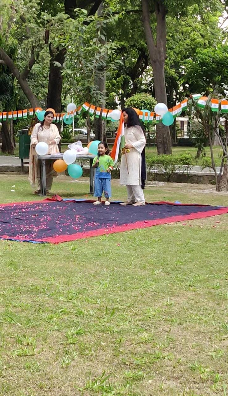 गाजियाबाद। स्वतंत्रता दिवस के मौके पर कवि नगर जी ब्लॉक स्थित रानी झांसी बाई पार्क में धूमधाम से आजादी का जश्न मनाया गया। बच्चों ने रंगारंग कार्यक्रमों की प्रस्तुति देकर सबका मन मोह लिया। राष्ट्रीय ध्वज तिरंगा फहराकर सभी ने झंडे को सलामी देते हुए राष्ट्रगान गाया। कार्यक्रम का संचालन करते हुए कवि नगर जी ब्लॉक आरडब्लूए की पदाधिकारी साधना वर्मा किया। उन्होंने बताया आज के दिन भारत अपना 77वां स्वतंत्रता दिवस मना रहा है। इस वर्ष का थीम है राष्ट्र पहले, हमेशा पहले देश को आजाद हुए 76 वर्ष पूरे हो गए है। यह दिन भारतीय स्वतंत्रता सेनानियों के सदियों के संघर्ष बलिदान और दृढ संकल्प का प्रतीक है, जिन्होंने देश की आजादी के लिए अथक प्रयास किए। 15 अगस्त ही वह दिन है जब देश को अंग्रेजों की 200 सालों की गुलामी की बेडियों से मुक्ति मिली थी। उन्नति पथ पर चक अनवरत चलता हुआ न ठहरे।