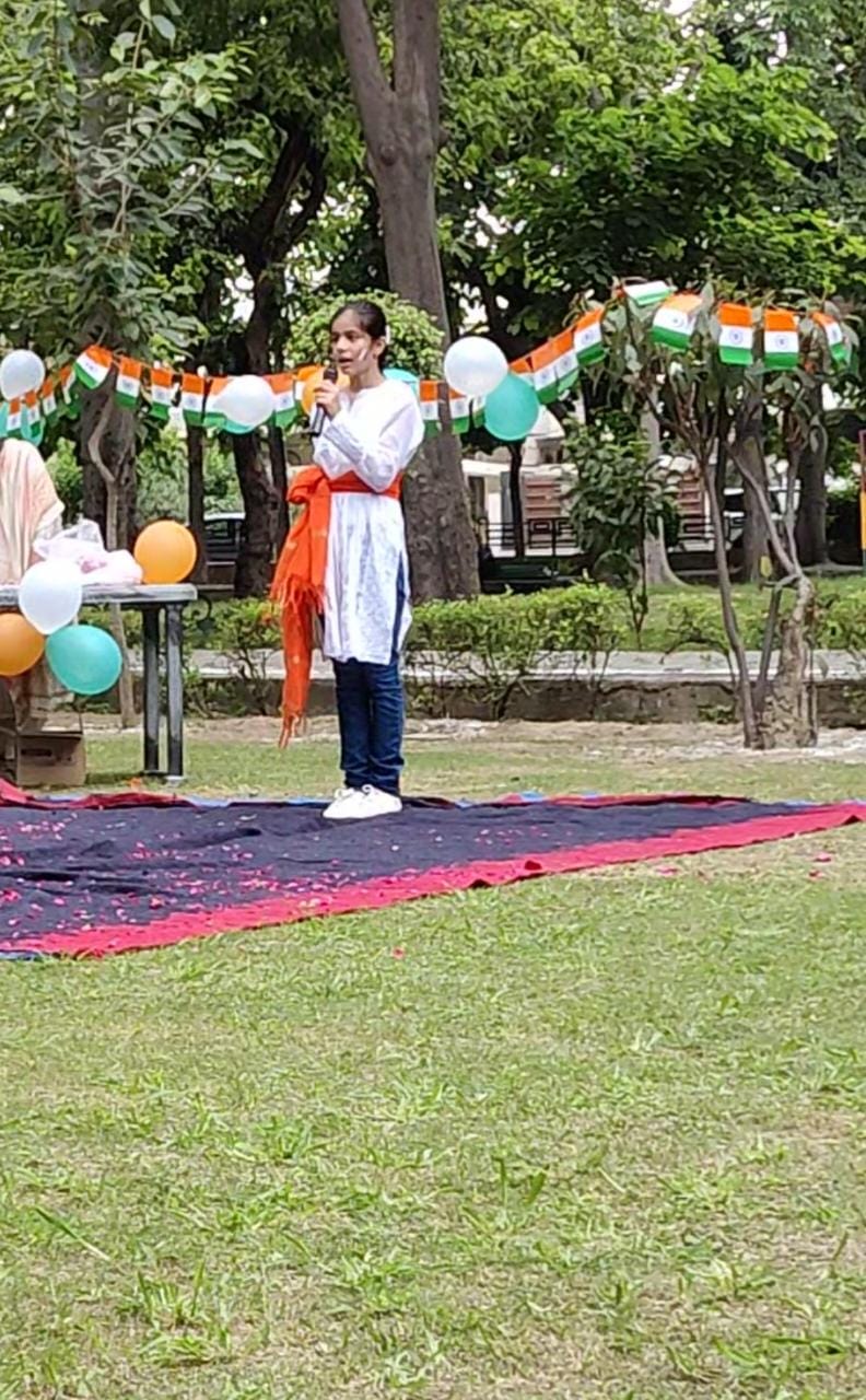 स्वतंत्रता दिवस के मौके पर कवि नगर जी ब्लॉक स्थित रानी झांसी बाई पार्क में धूमधाम से आजादी का जश्न मनाया गया। बच्चों ने रंगारंग कार्यक्रमों की प्रस्तुति देकर सबका मन मोह लिया। राष्ट्रीय ध्वज तिरंगा फहराकर सभी ने झंडे को सलामी देते हुए राष्ट्रगान गाया।