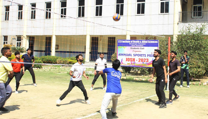 गाजियाबाद। दिल्ली-मेरठ रोड़ स्थित आईटीएस इंस्टीट्यूट ऑफ हैल्थ एण्ड एलाईड साइंसेज ने बीपीटी के विभिन्न बैचों के छात्रों के बीच एक अंतर्विभागीय खेल प्रतियोगिता-जोश का आयोजन किया। खेल का आयोजन आईटीएस कॉलेज के स्पोर्ट्स कॉम्पलेक्स और मुख्य मैदान में तीन दिवसीय 2 मार्च से 4 मार्च शनिवार तक आयोजित किया गया। वाईस चेयरमैन अर्पित चड्ढा ने कार्यक्रम का उद्घाटन प्रिंसिपल डॉ सीएस राम के साथ किया। स्पोर्ट्स प्रतियोगिताओं में इनडोर और आउटडोर खेलों के लिए कई व्यक्तिगत और टीम खेल कार्यक्रम आयोजित किये गये थे।