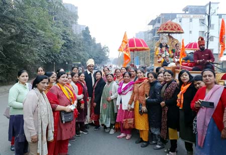 उन्होंने आयोजन से जुड़े सभी आयोजकों और सहभागियों की भूरि-भूरि प्रशंसा की। शोभा यात्रा के आयोजन संयोजक दीपक गुप्ता, सुनील गांधी एवं पप्पू चौपाल को इस भव्य और अनुशासित आयोजन के लिए विशेष रूप से धन्यवाद दिया गया। यात्रा में बैंड-बाजा, ढोल-नगाड़े, घोड़े और घोड़ा-बग्गी आकर्षण का केंद्र रहे। भगवान श्रीराम और माता सीता के स्वरूप में सजे कलाकारों का जगह-जगह पुष्पवर्षा और आरती के साथ स्वागत किया गया। जगन्नाथ मंदिर की ‘हरे राम हरे कृष्णÓ संकीर्तन मंडली ने पूरे वातावरण को भक्तिमय बना दिया। यात्रा के दौरान कौशांबी पार्क ग्रुप द्वारा भगवान राम और माता सीता की आरती की गई तथा हनुमान चालीसा का पाठ हुआ।