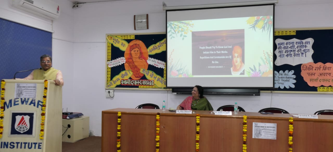 आज भी थोथे कर्मकांड के हम शिकार हैं। वर्ण व्यवस्था आज भी कायम है। वर्ष 1875 में आर्य समाज की स्थापना के समय महर्षि दयानंद ने हरिद्वार में पाखंड खंड खंडिनी पताका गाड़कर सभी विद्वानों को शास्त्रार्थ की चुनौती दी। इसमें उन्होंने तमाम अंध विश्वासों व विरोधों को समाप्त कर स्त्री शिक्षा पर जोर दिया। वर्ण व्यवस्था, अंधविश्वास, रुढ़ परम्परा, लोभ, मोह आदि का त्याग करने की बात कही। डॉ. गदिया ने कहा कि स्वामी दयानंद महिलाओं के विकास के प्रबल पक्षधर थे। मेवाड़ ग्रुप ऑफ इंस्टीट्यूशंस की निदेशिका डॉ. अलका अग्रवाल ने कहा कि विद्यार्थी महापुरुषों की जयंतियों से प्रेरणा लें। 200 साल बाद भी जो कुरीतियां आज भी जीवित हैं उनका समूल नाश होना चाहिए। तभी नये और संगठित राष्ट्र की कल्पना की जा सकती है।