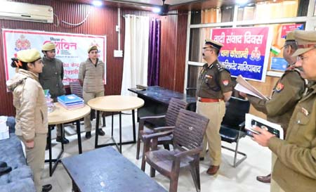 गाजियाबाद। थाना कौशांबी में शनिवार को एडिशनल पुलिस कमिश्नर मुख्यालय एवं अपराध केशव कुमार चौधरी ने वार्षिक निरीक्षण किया। इस दौरान उन्होंने मिशन शक्ति केंद्रों, महिला सुरक्षा और उनकी समस्याओं से संबंधित मामलों की समीक्षा की और थाना परिसर का भ्रमण कर साफ-सफाई और नवनिर्माण कार्यों का निरीक्षण किया। एडीशनल पुलिस कमिश्नर ने थाना प्रभारी एवं पुलिसकर्मियों को निर्देश दिए कि आमजन के साथ हमेशा संवेदनशील और शालीन व्यवहार बनाए रखा जाए। उन्होंने महिलाओं की सुरक्षा के लिए जागरूकता कार्यक्रम आयोजित करने और उनकी समस्याओं का समय पर निस्तारण सुनिश्चित करने का भी निर्देश दिया।