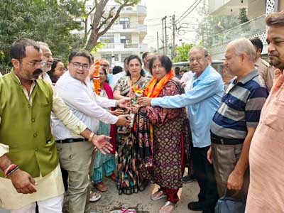 इस अवसर पर पार्षद प्रतिमा शर्मा, शशि खेमका, राहुल शर्मा, राजू शर्मा, वाई.के. जैन, सुभाष बंसल, संतोष कुमार, एम.एल. गर्ग, प्रवीण गर्ग, पारुल अग्रवाल, मनोज बोहरा, भूषण सिंह चौहान (मंडल अध्यक्ष), भूपेंद्र सिंह, पुरुषोत्तम सिंह लोधी, चंद्रकांत गुप्त, बबलू पांडे, राजकुमार गोस्वामी, संजय कुमार और सुनील बंसल सहित बड़ी संख्या में स्थानीय लोग उपस्थित थे। महापौर सुनीता दयाल ने अंत में कहा कि जनता का विश्वास उनकी सबसे बड़ी ताकत है और इसी विश्वास के आधार पर वह शहर के विकास को नई ऊँचाई तक ले जाने का काम लगातार करती रहेंगी।