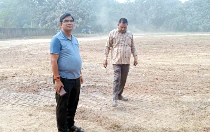-कमला नेहरू नगर, पोलिंग पार्टी ग्राउंड में सफाई और पानी छिड़काव काम हुआ तेज