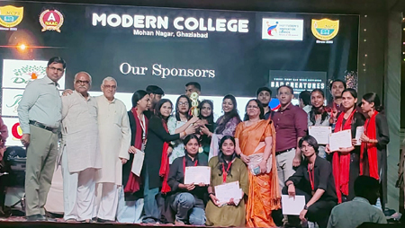 गाजियाबाद। मोहन नगर स्थित मॉडर्न कॉलेज में सांस्कृतिक-साहित्यिक समिति के तत्वावधान में आयोजित दो दिवसीय वार्षिकोत्सव समारोह ‘नव उत्कर्ष 2026’ का द्वितीय दिवस उत्साह, ऊर्जा और विद्यार्थियों की रचनात्मक प्रतिभा के शानदार प्रदर्शन के साथ सफलतापूर्वक संपन्न हुआ। समापन दिवस पर कॉलेज परिसर सांस्कृतिक रंगों, कला और युवा उत्साह से सराबोर नजर आया। कार्यक्रम के समापन सत्र का शुभारंभ महाविद्यालय के सचिव विनीत गोयल एवं प्राचार्या डॉ. निशा सिंह ने किया। द्वितीय दिवस पर आयोजित विभिन्न प्रतियोगिताओं में विद्यार्थियों ने पूरे समर्पण और जोश के साथ भाग लिया। सामूहिक नृत्य प्रतियोगिता में सांस्कृतिक विविधता और तालमेल का शानदार प्रदर्शन देखने को मिला, वहीं नुक्कड़ नाटक के माध्यम से छात्रों ने सामाजिक विषयों को प्रभावशाली अंदाज में प्रस्तुत कर दर्शकों को सोचने पर मजबूर किया।