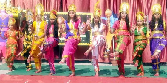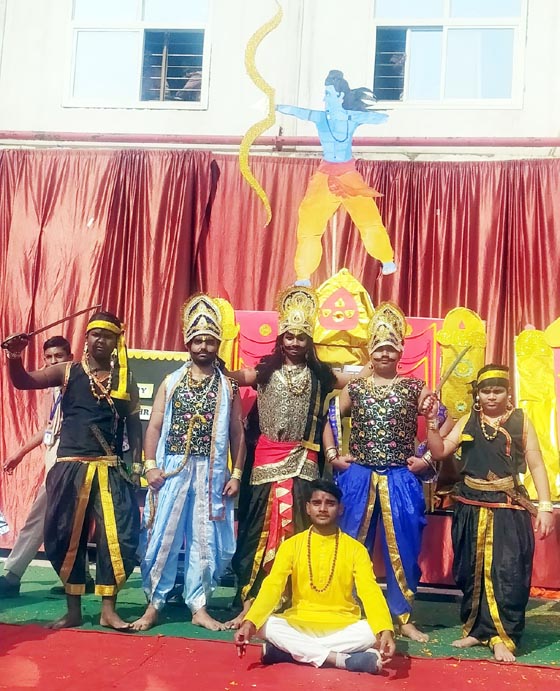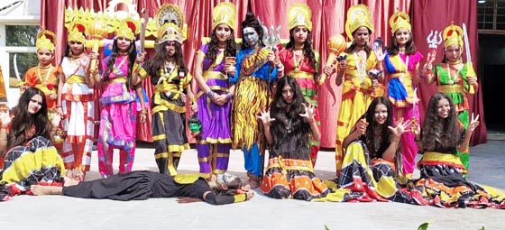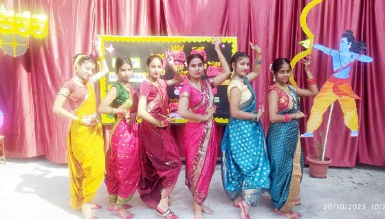 विद्यालय में सांस्कृतिक कार्यक्रम हुए। जिसमें मां दुर्गा का आगमन और रक्तबीज का वध दिखाया गया। इस अवसर पर डायरेक्टर आशीष गौतम, प्रधानाचार्या पूनम गौतम, उपप्रधानाचार्या तनुजा ने मॉ दुर्गा के प्रतिमा पर फूल माला चढ़ाकर, पूजा-अर्चना की। बच्चों ने सर्वप्रथम मां कालिका का चंडी नृत्य प्रस्तुत किया। इसके बाद नवदुर्गा रूपों की झांकी प्रस्तुत की। इसके बाद में राम रावण युद्ध का प्रदर्शन हुआ। इस अवसर पर शिक्षक-शिक्षिकाओं ने लोकगीत, भजन, भक्तिगीत आदि प्रस्तुत कर बच्चों का उत्साह बढ़ाया। डायरेक्टर ने बच्चों को मर्यादा पुरुषोत्तम राम के आदर्शों पर चलकर आदर्श नागरिक बनने के लिए प्रेरित किया। इस दौरान बुराई पर अच्छाई की जीत के उपलक्ष्य में रावण के पुतले का दहन किया गया। बच्चों को दशहरा की शुभकामना दी।