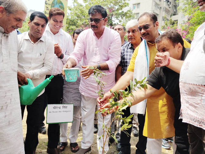 सेक्टर पी-3 में पौधरोपण के दौरान विधायक धीरेंद्र सिंह ने कहा कि वन संरक्षण के साथ ही जल-संरक्षण करना भी जरूरी है।