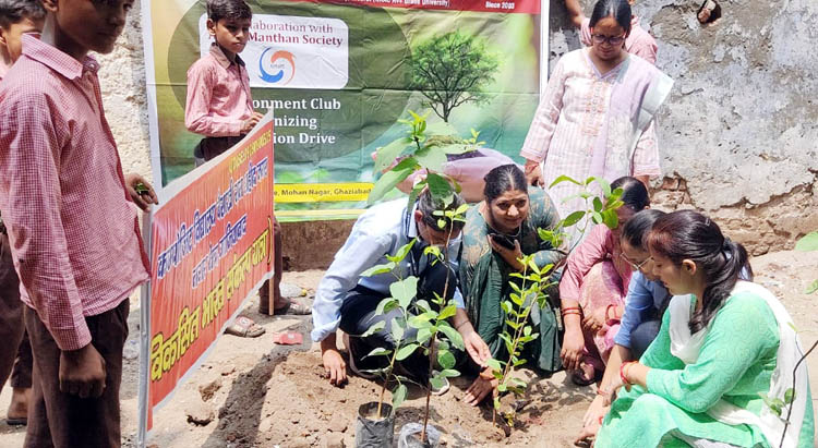 गाजियाबाद। मोहन नगर स्थित मॉडर्न कॉलेज ऑफ प्रोफेशनल स्टडीज के पर्यावरण क्लब एवं कमेटी फॉर एक्सटेंशन एक्टिविटीज एंड कम्युनिटी आउटरीच प्रोग्राम व अमृत मंथन वेलफेयर सोसायटी के संयुक्त तत्वाधान में आयोजित तीन दिवसीय वृक्षारोपण अभियान के तीसरे व अंतिम दिन शुक्रवार को महाविद्यालय की प्राचार्या डॉ निशा सिंह के नेतृत्व में कंपोजिट विद्यालय बैसाखी राम शहीद नगर के प्रांगण में वृक्षारोपण किया गया। प्राचार्या डॉ निशा सिंह ने बताया मानव जीवन पूर्ण रूप से स्वस्थ तभी होगा जब कदम-कदम पर पौधे लगेंगे। पौधरोपण जीवन के लिए बेहद जरूरी है।