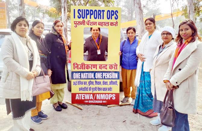 गाजियाबाद। पुरानी पेंशन बहाली व निजीकरण की समाप्ति पर अटेवा पेंशन बचाओ मंच का संघर्ष जारी है। अटेवा पेंशन बचाओ के तहत शिक्षकों व कर्मचारी सरकार की मंशा का विरोध लम्बे समय से करते आ रहे है। गुरुवार को कलेक्ट्रेट पर मतदाता जागरूकता रैली निकालने के साथ-साथ पुरानी पेंशन बहाली एवं निजीकरण वापस जाओ की आवाज को बुलंद किया। सरकारी कर्मचारी वर्तमान में पुरानी पेंशन व्यवस्था के अभाव में अनिश्चितता के दौर से गुजर रहा है और अपने बुढ़ापे के भविष्य को असुरक्षित पाता है।