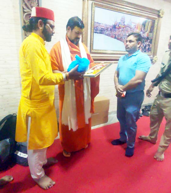 संत समाज आगे आकर सनातन धर्म और राष्ट्र रक्षा कर रहा है। मगर हिंदू समाज को भी अब आगे आकर सनातन धर्म की रक्षा के लिए आगे आना होगा। उन्होंने कहा सनातन धर्म ही ऐसा धर्म है जो मानवता के कल्याण का रास्ता दिखाता है। इसी कारण आज पूरे विश्व में सनातन धर्म का प्रभाव बढ़ रहा है। इससे घबराकर कुछ लोग सनातन धर्म के खिलाफ षडयंत्र रच रहे हैं, मगर वे यह भूल गए हैं कि सनातन धर्म को कभी भी खत्म नहीं किया जा सकता है। जिस धर्म की रक्षा खुद संत व भगवान करते हों, वह धर्म हमेशा रहेगा और ऐसा धर्म सनातन धर्म ही है। इस दौरान उन्होंने आगामी नवरात्रि पर मंदिर में होने वाली विशेष पूजा की तैयारी को लेकर चर्चा की। मंदिर में नौ दिन मां दुर्गा के नौ रूपों की पूजा की जाएगी। जिसमें कई राज्यों के लोग भी सम्मिलित होंगे।