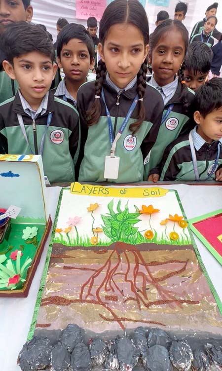 प्रदर्शनी में विभिन्न विषयों पर आधारित आकर्षक मॉडल, चार्ट और प्रोजेक्ट प्रस्तुत किए गए। कृषि, कृत्रिम बुद्धिमत्ता (एआई), विज्ञान, सामाजिक विज्ञान, हिंदी, अंग्रेजी तथा गणित के आधारभूत विषय-कोण और भिन्न को विद्यार्थियों ने रोचक एवं व्यावहारिक ढंग से समझाया। छोटे बच्चों ने सरल अवधारणाओं को रंग-बिरंगे मॉडलों और चित्रों के माध्यम से प्रस्तुत कर दर्शकों का मन मोह लिया, वहीं वरिष्ठ कक्षाओं के विद्यार्थियों ने वैज्ञानिक दृष्टिकोण और सामाजिक जागरूकता से परिपूर्ण प्रोजेक्ट प्रदर्शित किए।