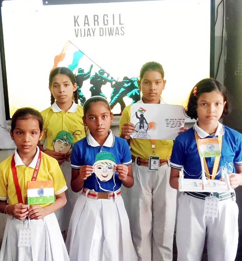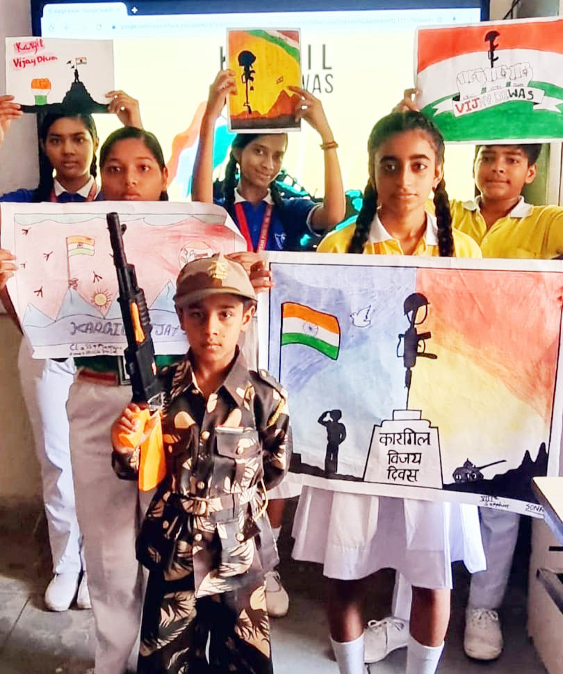 हम सभी को इन वीर योद्धाओं के जीवन से प्रेरणा लेनी चाहिए और जरूरत पड़ने पर अपने देश की खातिर अपना जीवन बलिदान करने के लिए तत्पर रहना चाहिए। उप प्रधानाचार्या तनुजा ने कहा आज कारगिल विजय दिवस है। ये दिन हमारे सैनिकों की वीरता को याद करने का है। आज हम अपने घरों में सुरक्षित और शांति से सो पाते हैं तो केवल और केवल हमारे देश के महान सैनिकों की वजह से। आज बॉर्डर पर हर हर परिस्थिति में देश की रक्षा कर रहे हैं। 25 साल पूरे होने पर रजत जयंती को लेकर पूरे देश में इसकी धूम है।
