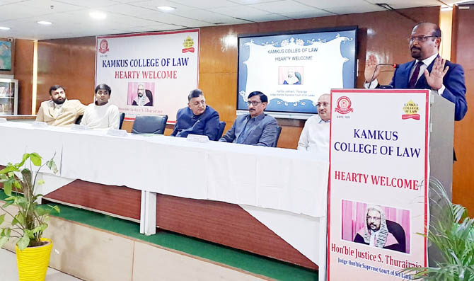 न्यायमूर्ति एस. थुरैराजा ने छात्रों से अपने जुडिशल अनुभवों को साझा किया और लंका में अभी हाल में आई कंगाली और उस दौरान हुई राजनैतिक उठापटक के दौरान कोर्ट के सामने आई नई-नई चुनौतियों पर चर्चा की। उन्होंने कहा कि उन दिनों कोर्ट में अलग-अलग तरह के वाद आ रहे थे और देश में राजनैतिक अस्थिरता के कारण जनता की उम्मीदें कोर्ट से बहुत बढ़ गयी थी। वो वास्तव में एक अलग तरह की चुनौतियों से भरा समय था जो अभी जारी है।