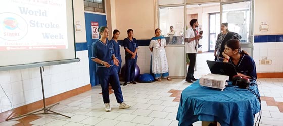 गाजियाबाद। दिल्ली-मेरठ हाईवे स्थित आईटीएस इंस्टीट्यूट ऑफ हेल्थ एण्ड एलाईड साइंसेज में आम जनता के बीच जागरूकता बढ़ाने के लिए शुक्रवार से 3 नवंबर तक स्ट्रोक सप्ताह मना रहा है। विश्व स्ट्रोक दिवस हर साल 29 अक्टूबर को मनाया जाता है। यह दिन स्ट्रोक की गंभीर प्रकृति और उच्च दर पर जोर देता है। स्ट्रोक दिवस-2023 में थीम ÓÓरोकथाम स्ट्रोक से भी बडा हैÓÓ रखा गया है, जो स्ट्रोक के विनाशकारी प्रभावों को कम करने में रोकथाम की महत्वपूर्ण भूमिका पर प्रकाश डालता है। फिजियोथेरेपी के छात्रों ने शुक्रवार को स्ट्रोक के लक्षण, उच्च जोखिम कारक, तत्काल उपाय, रोकथाम और प्रबंधन पर एक प्रस्तुति दी।