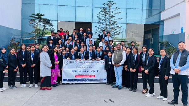 गाजियाबाद। डासना स्थित एसडीजीआई ग्लोबल यूनिवर्सिटी के स्कूल ऑफ साइंसेज के विद्यार्थियों ने हाल ही में नमस्ते इंडिया डेयरी प्लांट, मोदीनगर का औद्योगिक दौरा किया। इस दौरे का मुख्य उद्देश्य विद्यार्थियों को उद्योग जगत के कार्यों और प्रौद्योगिकी से परिचित कराना था, ताकि वे अपने शैक्षिक ज्ञान को व्यावहारिक रूप से समझ सकें। इस औद्योगिक दौरे ने विद्यार्थियों को उद्योग जगत में कार्यरत विभिन्न पहलुओं से अवगत कराया और उनके शैक्षिक और पेशेवर दृष्टिकोण को समृद्ध किया। इस अवसर पर विश्वविद्यालय के चांसलर महेन्द्र अग्रवाल ने टिप्पणी करते हुए कहा, हमेशा से ही एसडीजीआई ग्लोबल यूनिवर्सिटी का उद्देश्य विद्यार्थियों को न केवल शैक्षिक दृष्टिकोण से सशक्त बनाना है, बल्कि उन्हें उद्योग जगत के लिए भी तैयार करना है।