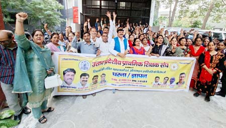 गाजियाबाद। जिले में शनिवार को उत्तर प्रदेशीय प्राथमिक शिक्षक संघ के बैनर तले सैकड़ों शिक्षकों ने अपनी आवाज बुलंद की। शिक्षकों ने जिलाधिकारी कार्यालय पहुंचकर कलेक्ट्रेट का घेराव किया और सरकार से अपनी लंबित मांगों के समाधान की जोरदार अपील की। प्रदर्शन का नेतृत्व संघ के जिलाध्यक्ष रविंद्र राणा ने किया। शिक्षकों ने जिलाधिकारी के माध्यम से मुख्यमंत्री योगी आदित्यनाथ के नाम ज्ञापन सौंपा और कहा कि जब तक उनकी वास्तविक समस्याओं का समाधान नहीं किया जाता, तब तक किसी भी प्रकार के डिजिटाइजेशन या ऑनलाइन उपस्थिति प्रणाली को लागू करना अनुचित होगा। संघ के प्रांतीय उपाध्यक्ष डॉ. अनुज त्यागी ने कहा कि प्राथमिक शिक्षक, शिक्षामित्र, अनुदेशक और शिक्षणेत्तर कर्मचारियों की समस्याएं वर्षों से शासन के पास लंबित पड़ी हैं। उन्होंने कहा कि शासन ने अब तक शिक्षकों की समस्याओं का निस्तारण नहीं किया, उल्टा अब ऑनलाइन डिजिटल उपस्थिति जैसी अव्यवहारिक व्यवस्था थोप दी है, जिसके विरोध में शिक्षक एकजुट हैं।
