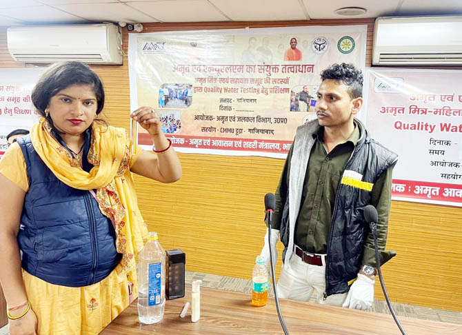गाजियाबाद। दूषित जल पीने से हर साल लाखों लोग बीमार होते हैं। वही उनका पैसा और समय दोनों ही नुकसान होता है। शहर के लोगों को स्वच्छ और निर्मल जल मिले इसके लिए नगर निगम की अमृत मित्र महिलाओं को जल की गुणवत्ता की जांच करने की ट्रेनिंग देना शुरु कर दिया है। अमृत मित्र कहलाने वाली महिलाएं जहां दूसरों को दूषित जल पीने से बचाने का काम करेंगी वही प्रति जल जांच की निर्धारित मानदेय 325 रुपये प्रतिदिन की बदौलत आत्मनिर्भर और स्वावलंबी भी बन सकेंगी। नगर निगम की अमृत मित्र महिलाएं प्रशिक्षित होने के बाद घर-घर जाकर पानी की गुणवत्ता की जांच कर जलकल विभाग को रिपोर्ट सौंपेगी, जहां पर खराबी होगी, उन घरों गुणवत्तायुक्त पानी उपलब्ध कराया जाएगा। नगर आयुक्त विक्रमादित्य सिंह मलिक के नेतृत्व में नगर निगम सीमा अंतर्गत अमृत 2.0 योजना के क्रम में पेयजल गुणवत्ता की जांच करने के लिए 55 स्वयं सहायता समूह की महिलाओं की टीम बनाई गई है। अमृत योजना में कार्य करने वाली महिलाओं को अमृत मित्र का नाम दिया गया है।