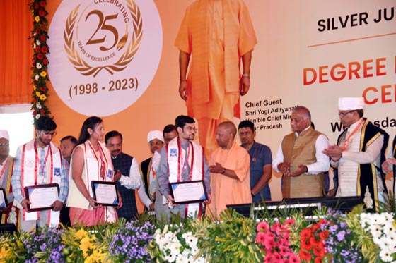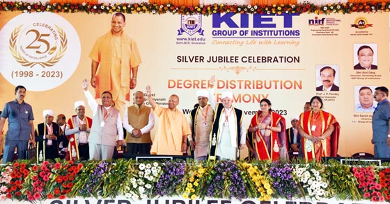 मुख्यमंत्री योगी आदित्यनाथ ने कॉलेज में आयोजित रजत जयंती और डिग्री वितरण समारोह में 16 छात्रों सहित उत्कृष्ट कार्य करने वाले स्टॉफ और स्टार्टअप शुरू करने वाले छात्रों को स्मृति चिन्ह देकर सम्मानित किया। कार्यक्रम के दौरान 1639 मेधावी छात्रों को डिग्री वितरित की गई।एकेटीयू के कुलपति प्रोफेसर जयप्रकाश पांडेय ने मुख्यमंत्री को पौधा देकर समारोह की शुरूआत की।डीन अनिल अहलावत ने कुलपति से अनुमति लेकर डिग्री वितरण कार्यक्रम शुरू कराया।समारोह में वर्ष-2022 बैच के पासआउट करने वाले छात्रों को डिग्री प्रदान की गई। इनमें छह ने स्वर्ण,रजत, छह ने कांस्य और 14 सांत्वना पुरस्कार प्राप्त करने वाले छात्र शामिल रहे। कुल 27 छात्रों में 16 ही उपस्थित हो सके। इसके अलावा बीटेक के 1029,एमटेक के 119,बीफार्मा-116 सहित एमसीए,एमबीए के 1639 छात्रों को डिग्री प्रदान की गई।समारोह के दौरान छात्रों द्वारा सांस्कृतिक और देश भक्ति से ओतप्रोत कार्यक्रमों ने लोगों का मन मोह लिया। मुख्यमंत्री पर बनाए गए गानों पर छात्रों की प्रस्तुति को सभी ने सराहा। सांस्कृतिक कार्यक्रमों के दौरान छात्रों ने जय श्रीराम के नारे भी लगाए। वहीं,मुख्यमंत्री के आने से पहले लोक निर्माण विभाग द्वारा दिल्ली-मेरठ मार्ग पर सड़क पर गड्ढ़े भरनेक का कार्य किया जाता रहा। दोपहर दो बजे तक काम चलता रहा। इसके अलावा नगर पालिका परिषद मुरादनगर द्वारा सफाई का कार्य किया गया।