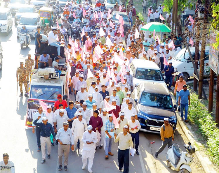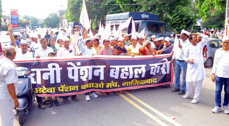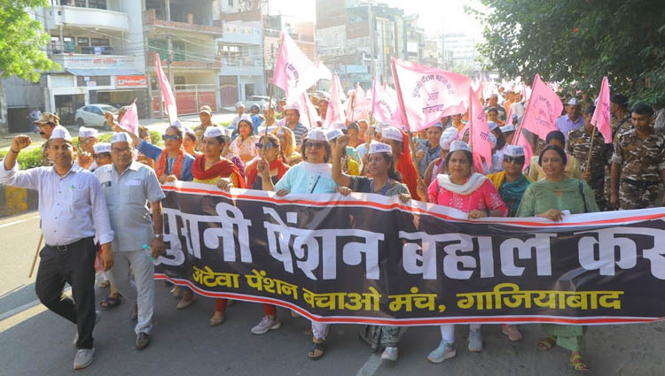 गाजियाबाद। उत्तर प्रदेश के जनपद गाजियाबाद में अटेवा पेंशन बचाओ मंच के आव्हान पर गुरुवार को एनपीएस और यूपीएस के विरोध में व पुरानी पेंशन बहाली की मांग को लेकर हजारों शिक्षक और कर्मचारियों ने नवयुग मार्किट पर एकत्र होकर जिला मुख्यालय तक मार्च निकाल कर अपना विरोध जाहिर किया। इस दौरान जिला मुख्यालय पर एकत्र होकर प्रधानमंत्री, मुख्यमंत्री के नाम का ज्ञापन जिलाधिकारी को दिया। केंद्र सरकार द्वारा एनपीएस में सुधार कर लाई गई यूनिफाइड पेंशन स्कीम (यूपीएस) लागू करने की घोषणा से सरकारी कर्मचारी नाराज है। अधिकांश कर्मचारी संगठनों ने नई पेंशन योजना यूपीएस का विरोध किया है।