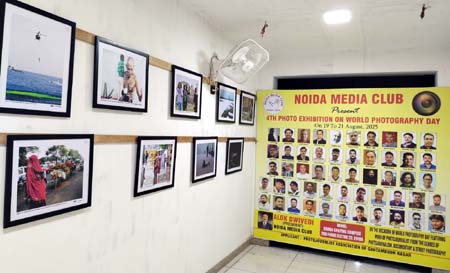 नोएडा। विश्व फोटोग्राफी दिवस (19 अगस्त) के अवसर पर नोएडा मीडिया क्लब में तीन दिवसीय फोटो प्रदर्शनी का आयोजन किया गया है। यह प्रदर्शनी 19 से 21 अगस्त तक सेक्टर-29 स्थित मीडिया क्लब में चलेगी। मंगलवार को प्रदर्शनी का शुभारंभ गौतमबुद्ध नगर की पुलिस कमिश्नर लक्ष्मी सिंह ने किया। उद्घाटन के बाद उन्होंने गैलरी में प्रदर्शित तस्वीरों का अवलोकन किया और फोटो पत्रकारों की मेहनत की सराहना की। उन्होंने कहा कि एक तस्वीर हजारों भावों को बयां करती है और इसके पीछे फोटोग्राफर की गहरी सोच और कड़ी मेहनत होती है। मीडिया क्लब की इस पहल को अंतरराष्ट्रीय स्तर तक ले जाने की जरूरत है, जिसमें पुलिस प्रशासन हरसंभव सहयोग करेगा। इस मौके पर मीडिया क्लब अध्यक्ष आलोक द्विवेदी ने पुलिस कमिश्नर को पुष्पगुच्छ और प्रतीक चिन्ह देकर सम्मानित किया। वहीं महासचिव जेपी सिंह, उपाध्यक्ष अमित चौधरी, सचिव जगदीश शर्मा, कोषाध्यक्ष मनोज वत्स और कार्यकारिणी सदस्य आंचल यादव ने अन्य अतिथियों का स्वागत और अभिनदंन किया।