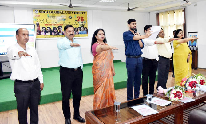 इस अवसर महाविद्यालय के चीफ प्रोक्टर डॉ जेके त्यागी, डॉ संगीतिका पाराशर, डॉ कल्पना त्यागी, डॉ सारिका सिंघल, डॉ अल्पना शर्मा, डॉ उपासना दीक्षित डॉ बिनाका अग्रवाल, डॉ मोनिका गोविल, डॉ अमरवती चौहान, डॉ कान्ता शर्मा, शिवानी शर्मा, डॉ हेमलता अग्रवाल, धीरेन्द्र ध्यानी, मंजू चौधरी, डॉ दुर्गेश शर्मा आदि मौजूद रहे। कार्यक्रम का संचालन अंग्रेजी विभाग की विभागाध्यक्ष सीरोन लाल ने किया। वहीं स्कूल ऑफ एजुकेशन, एस.डी.जी.आई. ग्लोबल यूनिवर्सिटी द्वारा मतदान जागरूकता के अंतर्गत मतदाता शपथ ग्रहण, नुक्कड नाटक और पोस्टर मेकिंग प्रतियोगिता का आयोजन किया गया। जिसमें विश्वविद्यालय के सभी स्कूलों के छात्र/छात्रओं ने बढ चढ़कर भाग लिया।