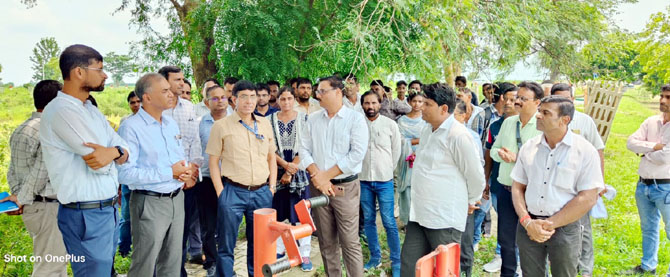 वहां पर पौधारोपण भी किया। किसान विजयपाल पुत्र नंद किशोर मजरा पलौता, ग्राम पंचायत-भटजन पलौता के खेत में स्थापित ड्रिप इरीगेशन का निरीक्षण किया। भटजन पनौता गांव में पंचायत भवन पर ग्रामीणों के साथ साथ भूजल संरक्षण के संबंध में चर्चा की गई। भोजपुर विकास खंड कार्यालय में रूफटॉप रेन वाटर हार्वेस्टिंग का निरीक्षण किया गया। भोजपुर में जल जीवन मिशन के अंतर्गत निर्मित पाइप पेयजल योजना एवं गांव में पेयजल योजना के लाभार्थी अरुण कुमार पुत्र ओमवीर सिंह के आवास में दिए गए कनेक्शन का निरीक्षण भी किया।